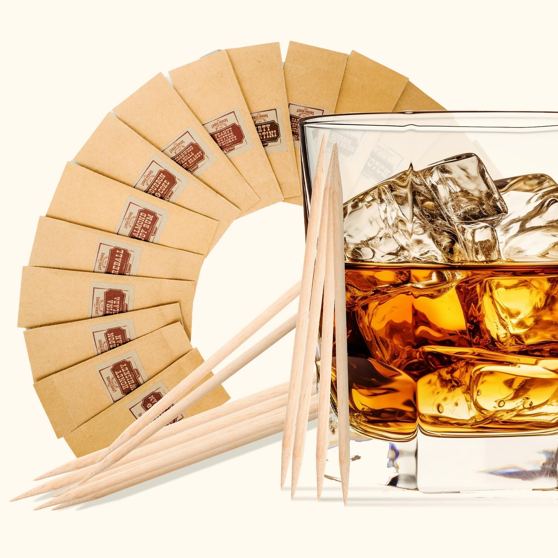 Crafted from premium white American birch, these toothpicks are artfully infused with refined liquor for a sophisticated sensory experience. Subtle at first, the flavor elegantly unfolds as the birch warms in your mouth, revealing layered complexity and a delicate balance of aromatic phenols.